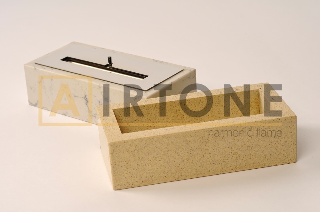 Наша серия настольных биокаминов начинается с небольшой, но очень стильной модели — Felicia. Она была разработана специально для украшения небольших кофейных и журнальных столиков. Несмотря на небольшой размер настольный камин имеет существенный вес за счет использования натурального камня, что придает ему устойчивость и благородство.