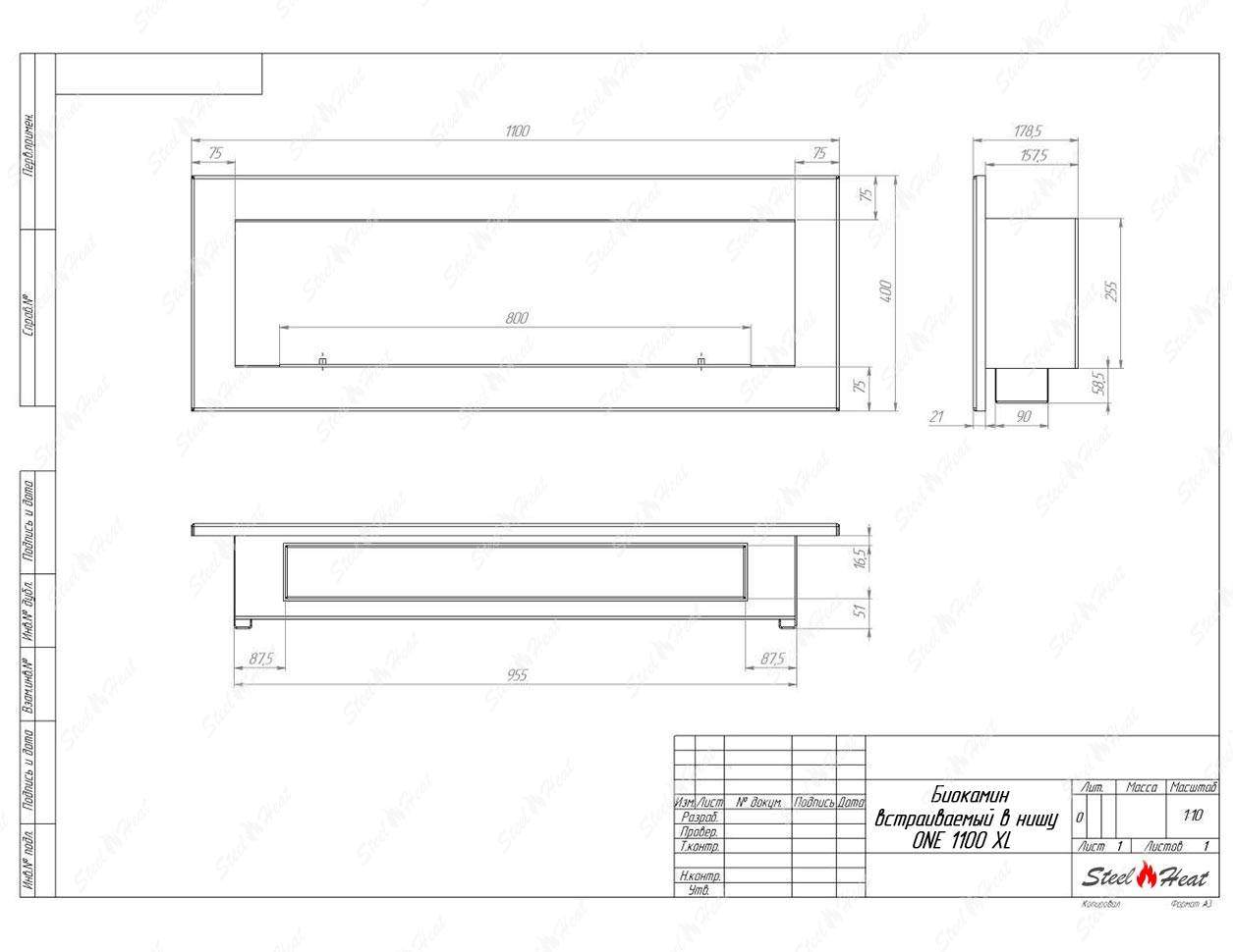 Встраиваемый Биокамин SteelHeat ONE-H 1100 XL предназначен для встраивания в глухие ниши из гипсокартона, кирпича, пеноблоков, бетона.