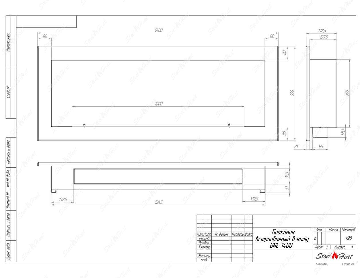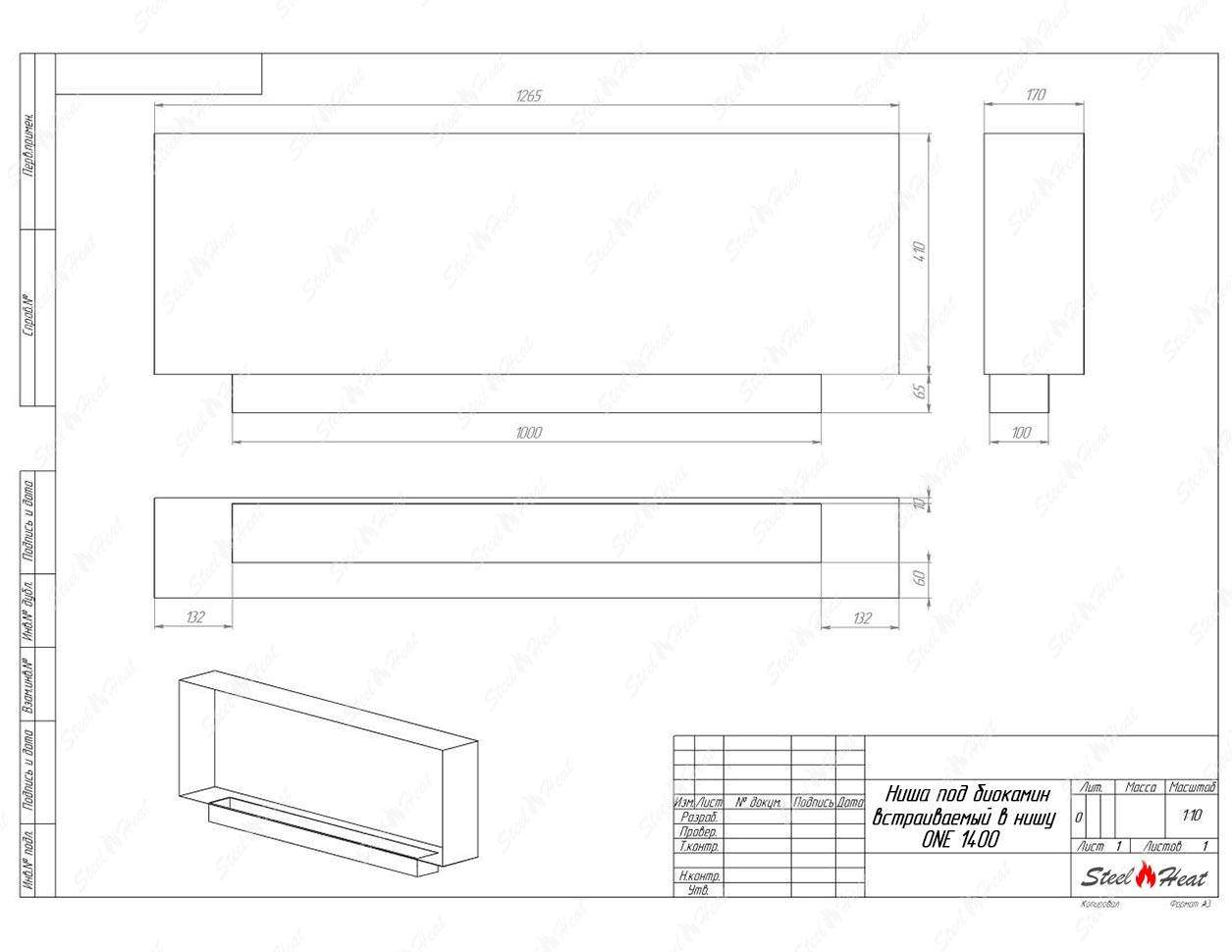 Встраиваемый Биокамин SteelHeat ONE-V 1400 предназначен для встраивания в глухие ниши из гипсокартона, кирпича, пеноблоков, бетона.