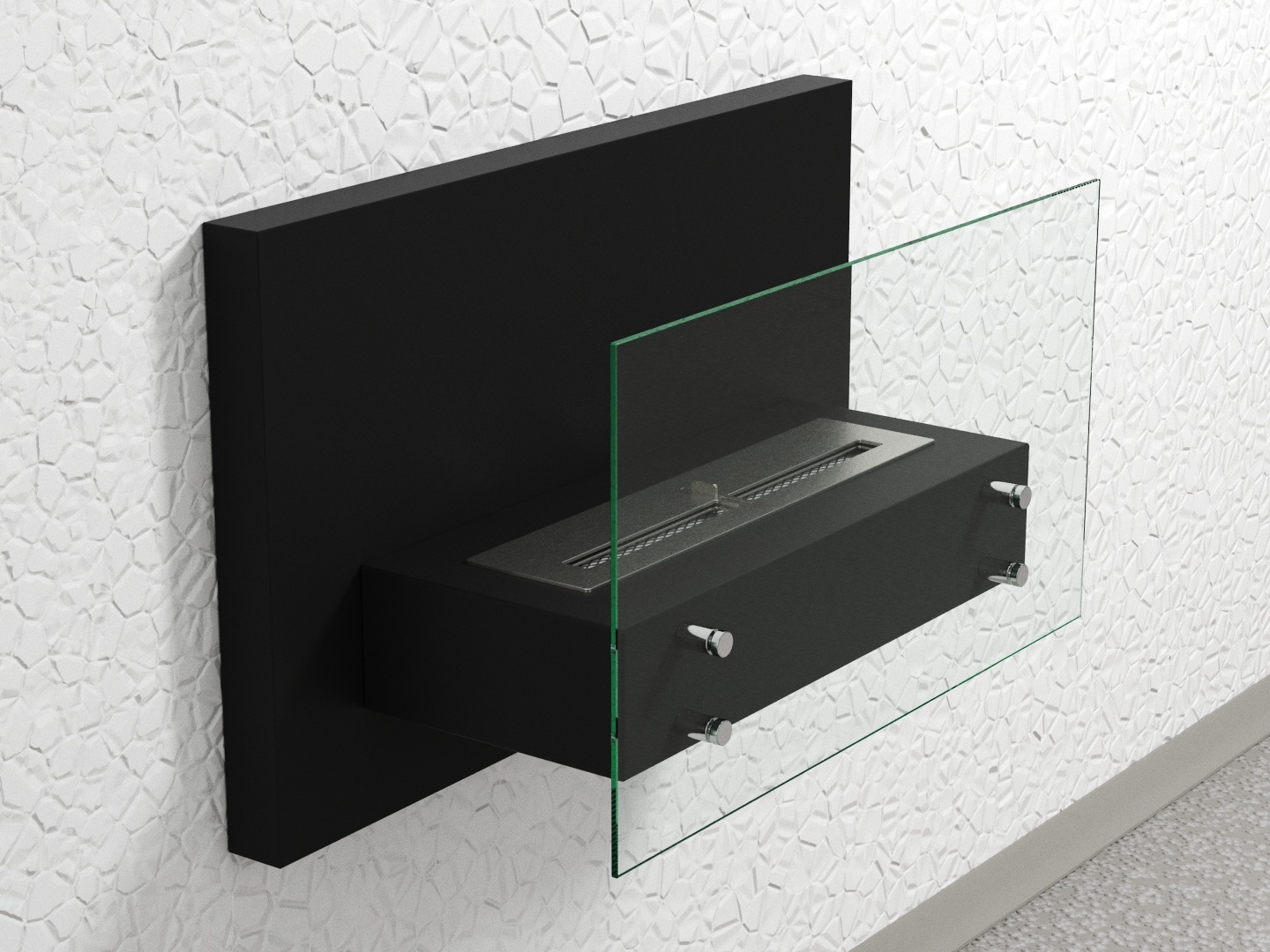 Представляет собой сборный металлический каркас с топливным блоком Lux Fire 500 М, закрепленный на 4 дистанционных держателях к защитному стеклу с подвесом к стене.Идеально подходит для интерьеров домов и квартир, релакс-зон бань и саун когда уже сделан ремонт в помещениях средней площади от 24 м2