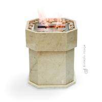 Очаг – это емкость куда заливается жидкое топливо. Емкость внутри заполняется керамическим материалом, который впитывает биотопливо, и в случае опрокидывания камина топливо не разливается. За счет этого конструкция стала полностью пожаробезопасной. Очаг встраивается в корпус из стали, который окрашивается специальной термостойкой краской, или же в заранее подготовленную нишу, изготовленную из негорючих материалов.