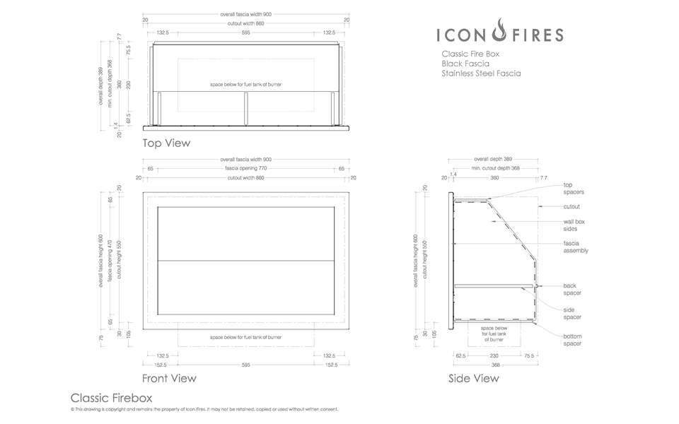 Встраиваемый биокамин Commercial CLASSIC FIREBOX BlackВстраиваемый биокамин CLASSIC FIREBOX с декоративной рамкой чёрного цвета комплектуется горелкой ICON FIRES Commercial LINEAR 614mm.