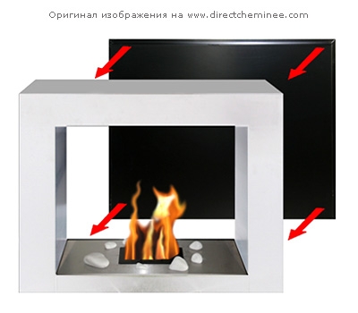 Очаг – это емкость куда заливается жидкое топливо. Емкость внутри заполняется керамическим материалом, который впитывает биотопливо, и в случае опрокидывания камина топливо не разливается. За счет этого конструкция стала полностью пожаробезопасной. Очаг встраивается в корпус из стали, который окрашивается специальной термостойкой краской, или же в заранее подготовленную нишу, изготовленную из негорючих материалов.