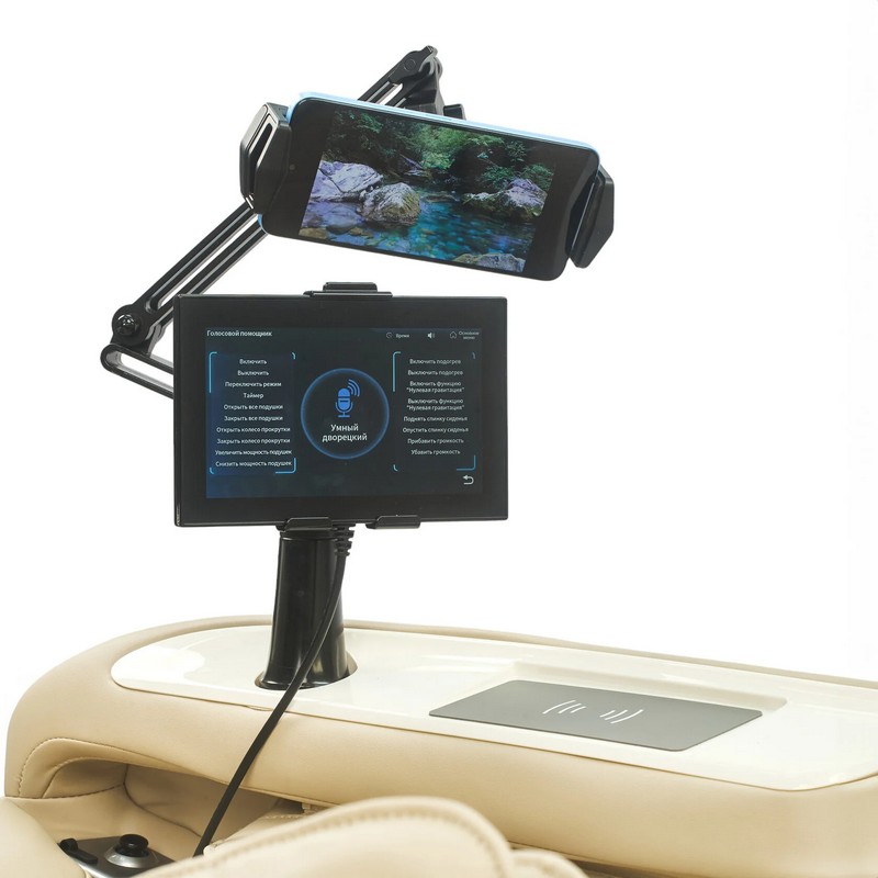 - беспроводная зарядка — встроенная в подлокотник;