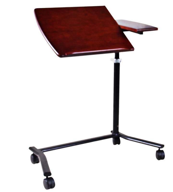 Столешница разделена на полочку для мыши и основную часть - для ноутбука. Угол наклона основной части столешницы регулируется.