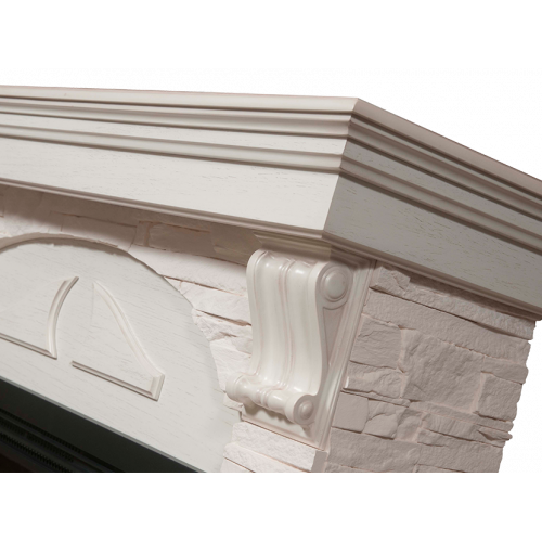 - Отделка: искусственный камень «Сланец» белый